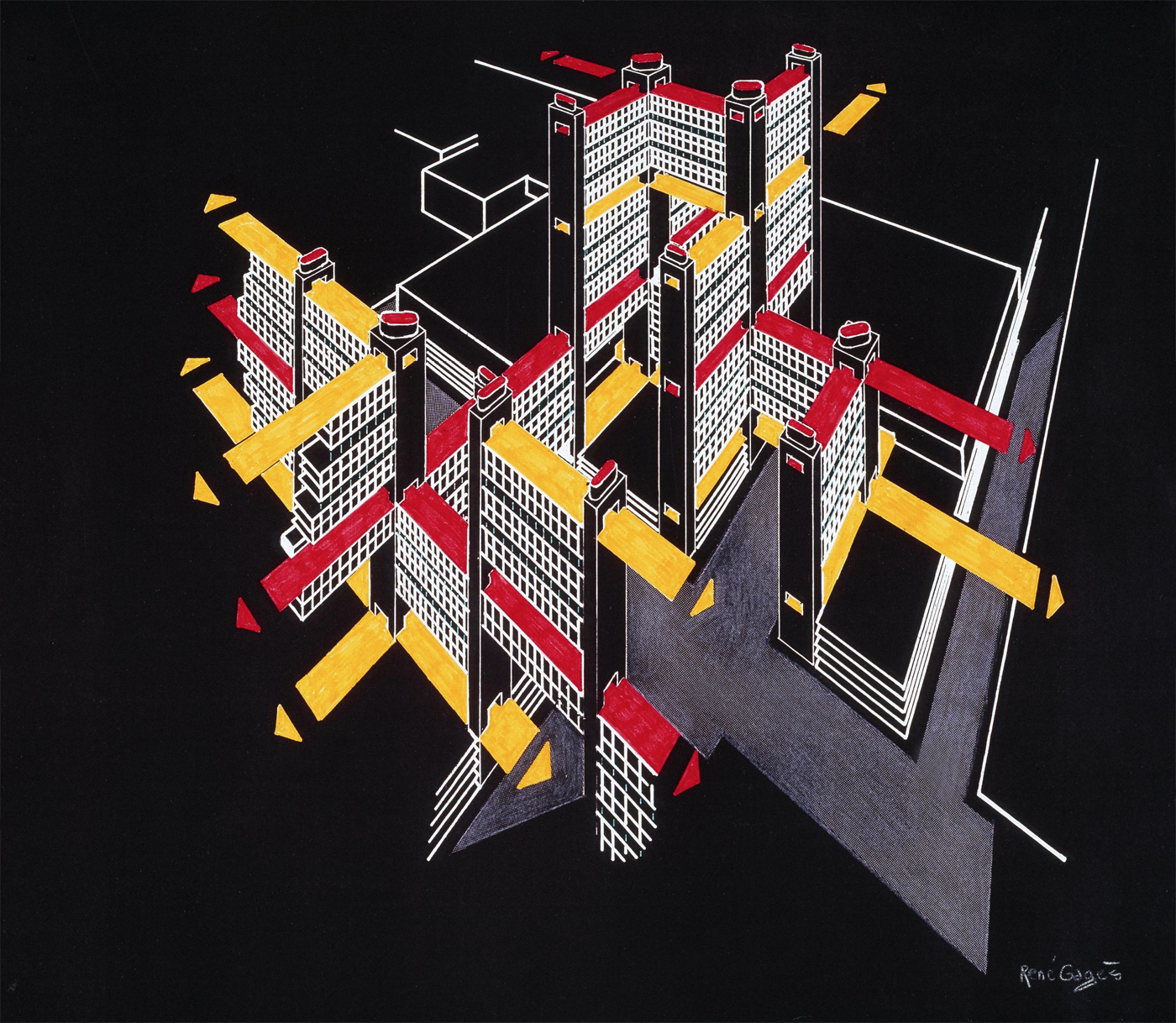 Geo a Day, Picta, Tecta by Editor28 January 202628 January 2026 Axonométrie | René Gagès Axonométrie | 1970 Felt-tip markers on printed paper | 29x33cm. Collection | Centre Pompidou | Paris René Gagès | Lyon | France | 1921-2008